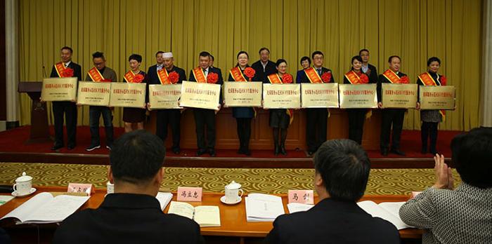 会议为群众满意的乡镇卫生院、优质服务示范社区卫生中心、优秀家庭医生团队代表授牌